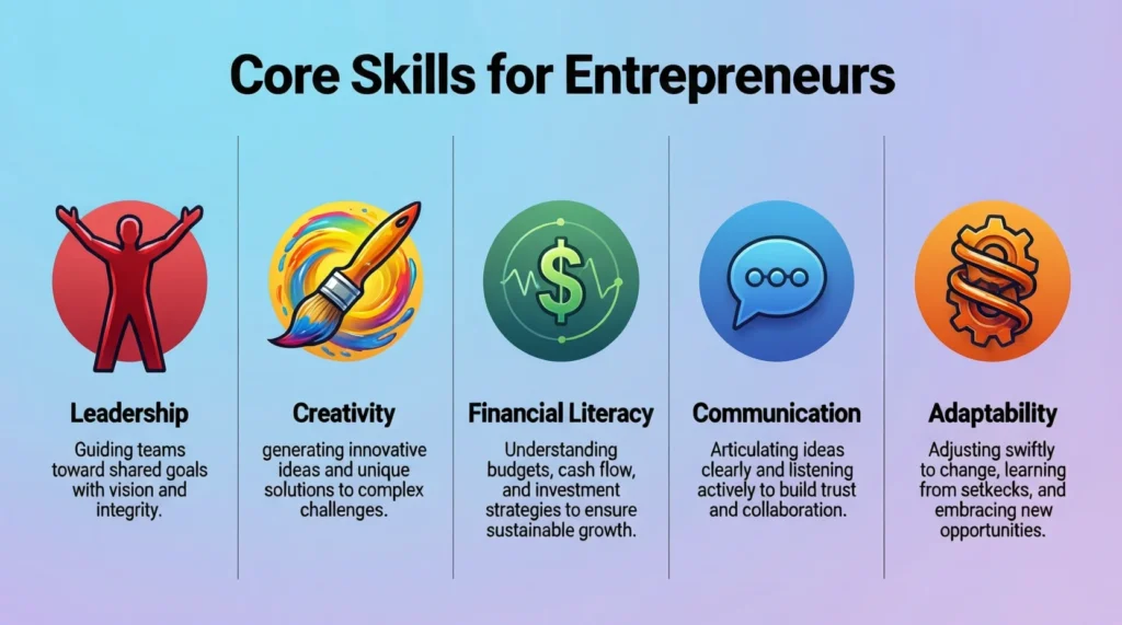 Entrepreneurial skills form the backbone of business success. They aren’t fixed traits but learnable abilities that grow with practice, reflection, and persistence.