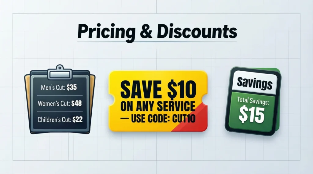 - Women’s haircut: $18–$25